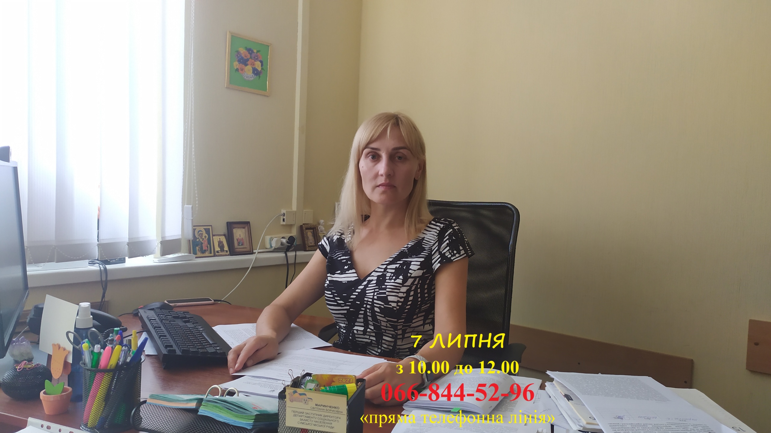 Звертаємо увагу, що сьогодні, 7 ЛИПНЯ, з 10.00 до 12.00 особистий прийом громадян у форматі «прямої телефонної лінії» за номером 066-844-52-96 буде проводити заступник начальника управління надання державної соціальної допомоги – начальник відділу прийняття рішень Наталія САУЛЯК. Всі, хто має питання, які стосуються соціального захисту, можуть звернутися на «пряму телефонну лінію і отримати фахову відповідь. Виплачені деякі види державних допомог окремим категоріям населення