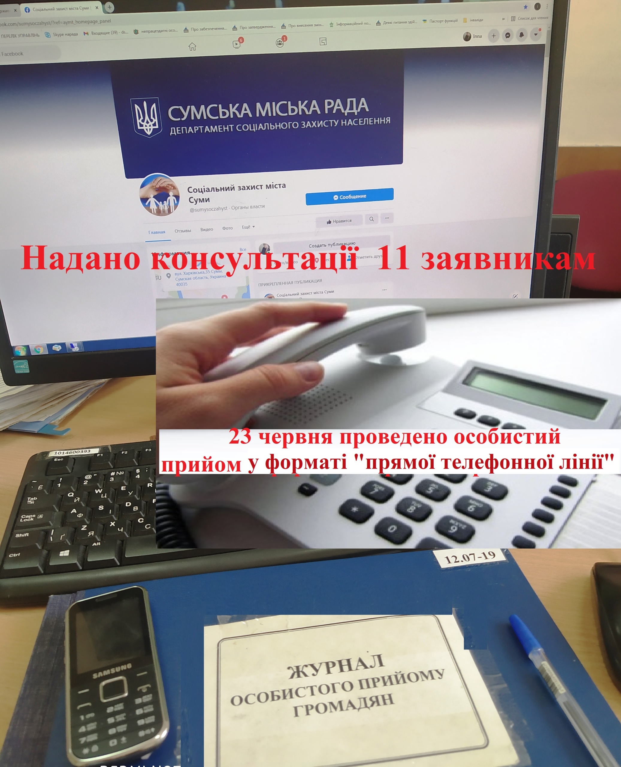 23 червня заступник начальника управління надання державної соціальної допомоги Інна Спориш провела особистий прийом громадян в форматі «прямої гарячої лінії». Протягом двох годин (з 10.00 до 12.00) можливістю отримати консультації скористалися 11 мешканців громади, а також і області, які цікавилися різними питаннями сфери діяльності департаменту соціального захисту населення Сумської міської ради, а саме: щодо автоматичного призначення субсидії на наступний термін: чи мають право та коли буде виконано; щодо стану розгляду поданої заяви та декларації на призначення... Шановні працівники та ветерани державної служби! Щиро вітаємо вас із професійним святом!