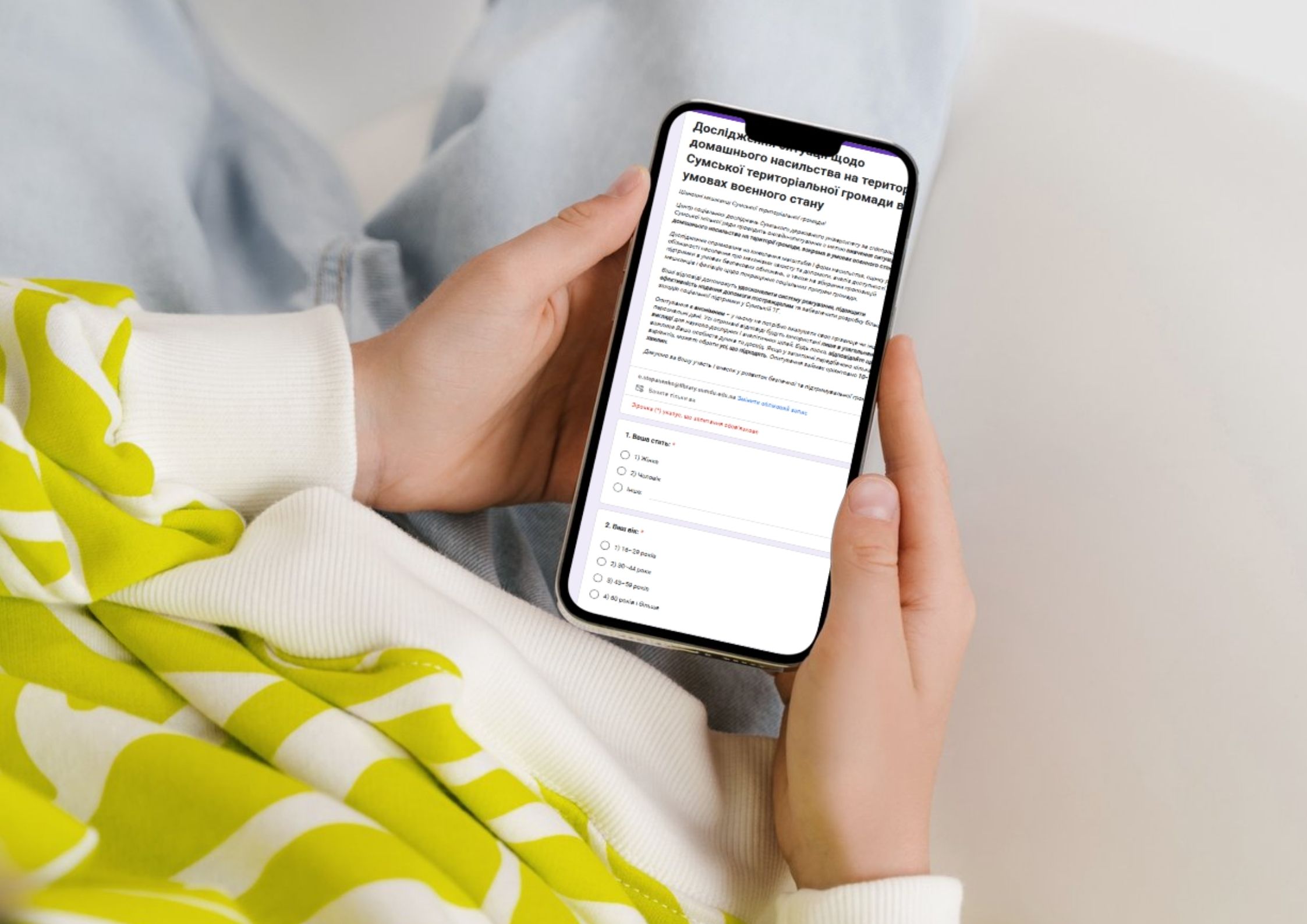 Продовжуємо вдосконалювати систему надання соціальних послуг для вразливих категорій населення, забезпечуючи рівний доступ кожного громадянина до необхідної підтримки.Для маломобільних громадян похилого віку та людей з інвалідністю, в рамках участі територіального центру «Берегиня» в проєкті Програми розвитку ООН (ПРООН) та за підтримки Республіки Корея терцентр «Берегиня», отримали спеціалізований автомобіль вартістю 2,3 млн. гривень. Це авто унікальне тим, що має спеціальний електропідйомник, який дає можливість отримувати соціальні послуги всім маломобільним верствам населення.«Цільове призначення нового автомобіля — підвезення людей... Суми проти насильства: анонімне онлайн-опитування для містян