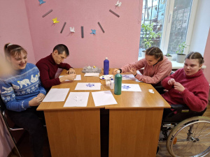 В межах моніторингу виконання проєкту «Надання послуг денного догляду, соціальної реабілітації особам з інвалідністю внаслідок інтелектуальних, психічних та фізичних порушень» спеціаліст департаменту відвідала заняття з арттерапії на зимову тематику «Малювання на солі», проведене для осіб з інвалідністю, які отримують послуги в громадській організації «Товариство допомоги особам з інвалідністю внаслідок інтелектуальних порушень «Феліцитас».